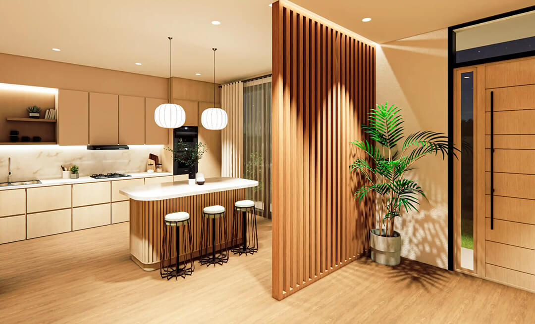 Salah satu produk yang menjadi highlight adalah Bamboo Board, material dengan tampilan serat natural yang memberikan kesan hangat dan elegan pada interior. Bamboo board sangat cocok digunakan untuk berbagai konsep desain populer seperti Japandi, minimalis, hingga modern natural. Selain memberikan tampilan estetis, bamboo board juga memiliki berbagai keunggulan seperti mudah dibersihkan, tahan terhadap kelembaban, serta memiliki daya tahan yang baik untuk penggunaan jangka panjang.